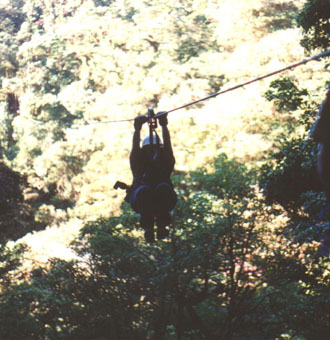 An innovative way of making the rainforest turn a profit; visitors can slide through the canopy on cables at speeds reaching 25 kph.